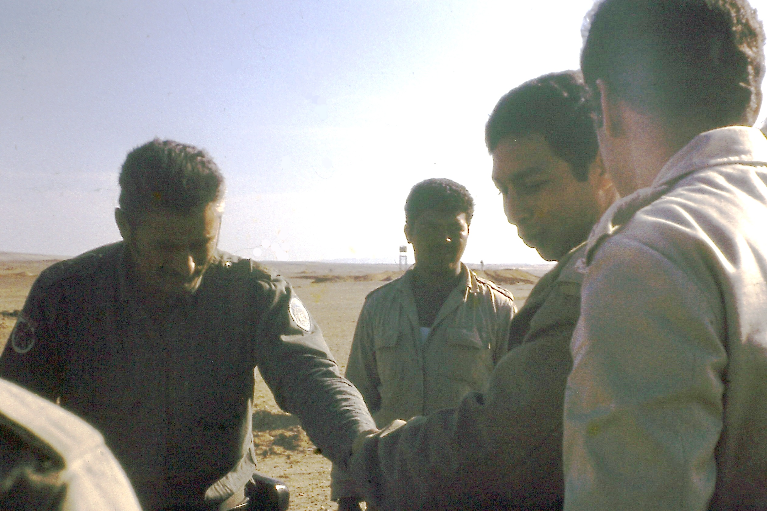 Die Übergabe an die Ägypter Um 1500 Uhr ist der gesamte Abschnitt an die Ägypter zu übergeben. Der für diesen Abschnitt verantwortliche Bataillonskommandant Major Rafid - er ist mir ebenfalls seit langem bekannt - kommt zu Fuß. Im letzten Augenblick merke ich, dass ich noch die israelichen Distinktionen auf meinen Schultern trage, kann sie aber noch unbemerkt entfernen. Die Ägypter legen Wert auf eine detaillierte Übergabe jedes einzelnen israelischen Stützpunkts. Um alle zu erreichen müssen die ägyptischen Offiziere auf unseren Fahrzeugen Platz nehmen - manche haben sichtlich Angst, wir könnten auf eine Mine fahren, lassen sich aber beruhigen. Vor Einbruch der Dunkelheit ist das gesamte Westufer des Suezkanals in ägyptischer Hand. |