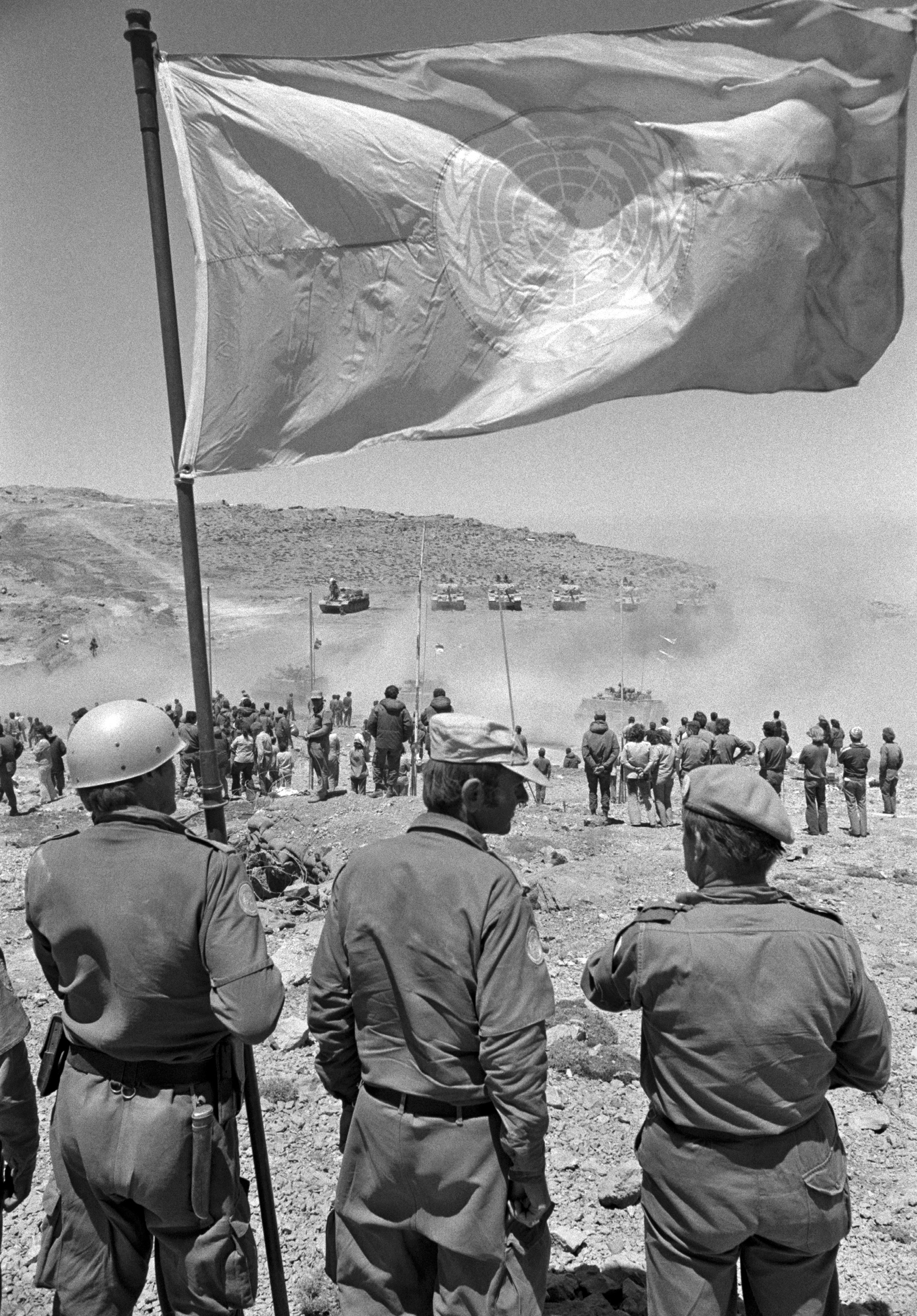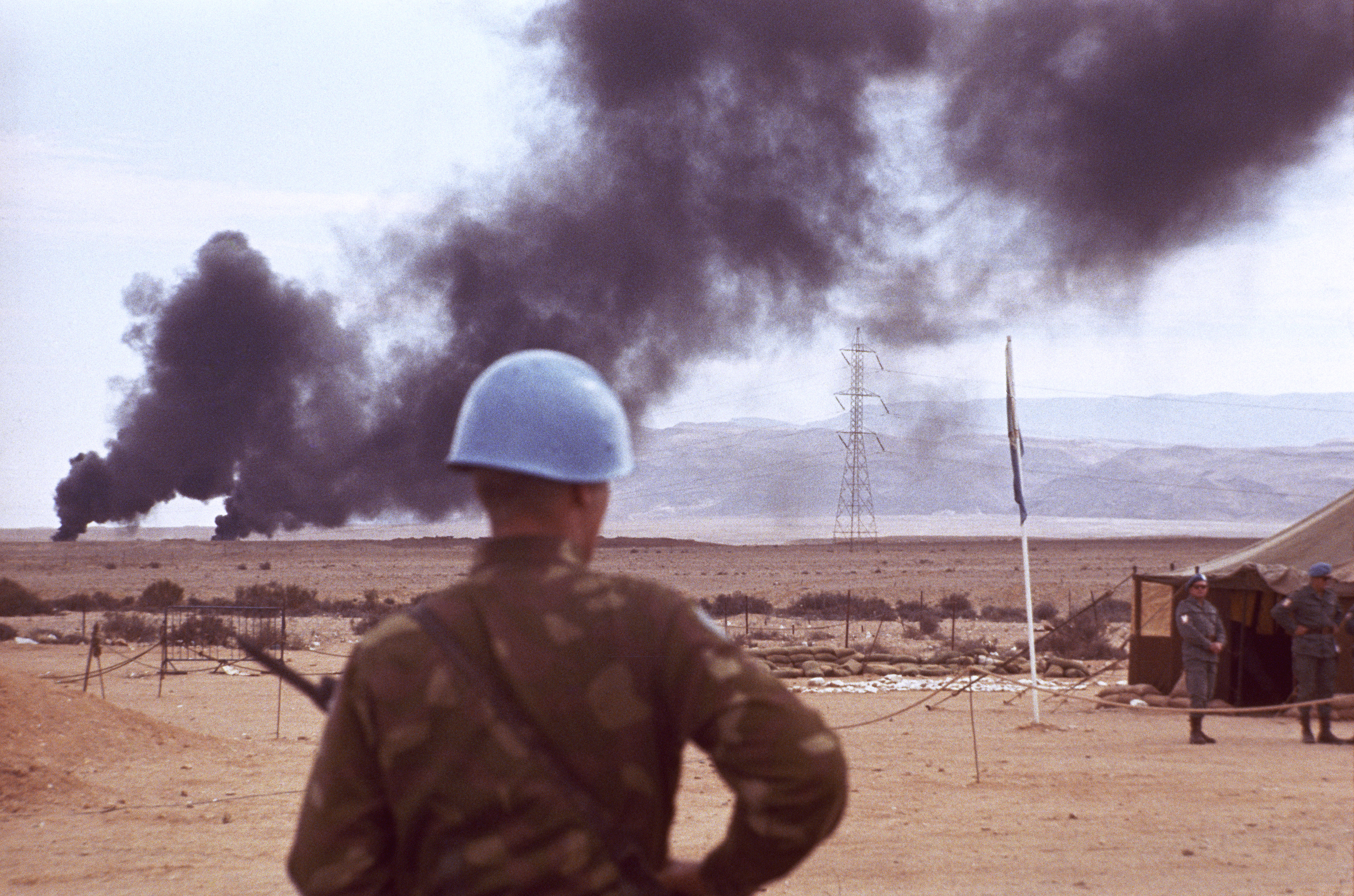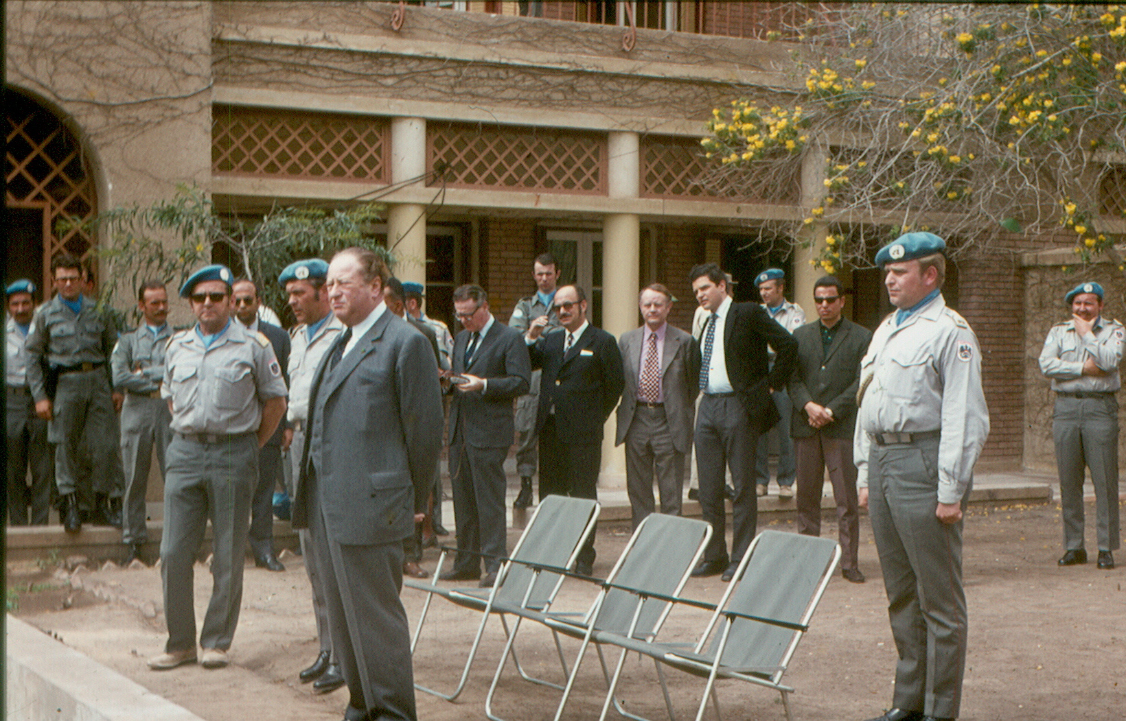 ![]() UN-Photo/Yutaka Nagata | Peer Hjalmar Ensio Siilasvuo, (geb. 1 Jänner 1922, - gest. 10. Jänner 2003.) 1940 Teilnahme am Zweiten Weltkrieg. 1944 zum Hauptmann befördert wurde zweimal verwundet. Nach 1945 in verschiedenen UN-Missions eingesetzt, 1957 Kommandant des finnischen Kontingents UNEF I, dann Bataillonskommandant auf Zypern, 1967 Stabschef im Rahmen UNTSO, zu deren Chef er 1970 ernannt wurde. 1973 Befehlshaber der UNEF II, dann "Chief Koordinator of the United Nations Peacekeeping Missions im Mittleren Osten." Tritt 1980 in den Ruhestand, 1989 zum Dreisterne-General befördert. Als kommandierender Chief of Staff der UNTSO hatte er noch vor dem Inkrafttreten der UN-Resolution 339, Israels Verteidigungsminister Dajan telefonisch informiert, dass er mit deren Wirksamwerden, UN-Beobachter zur Festlegung einer Waffenstillstandslinie an die Front entsenden würde. Sie einigten sich auf eine Feuereinstellung im Sinne der Resolution 339, um 0700 Uhr, dass damit auch entsprechend dem Wortlauts der Resolution jede weitere Truppen-bewegung zu unterlassen sei, hatte Dajan offenbar überhört zurück zum Inhaltsverzeichnis |