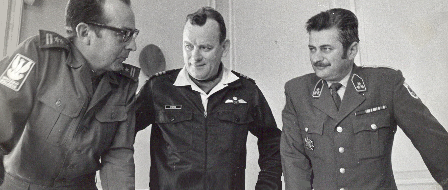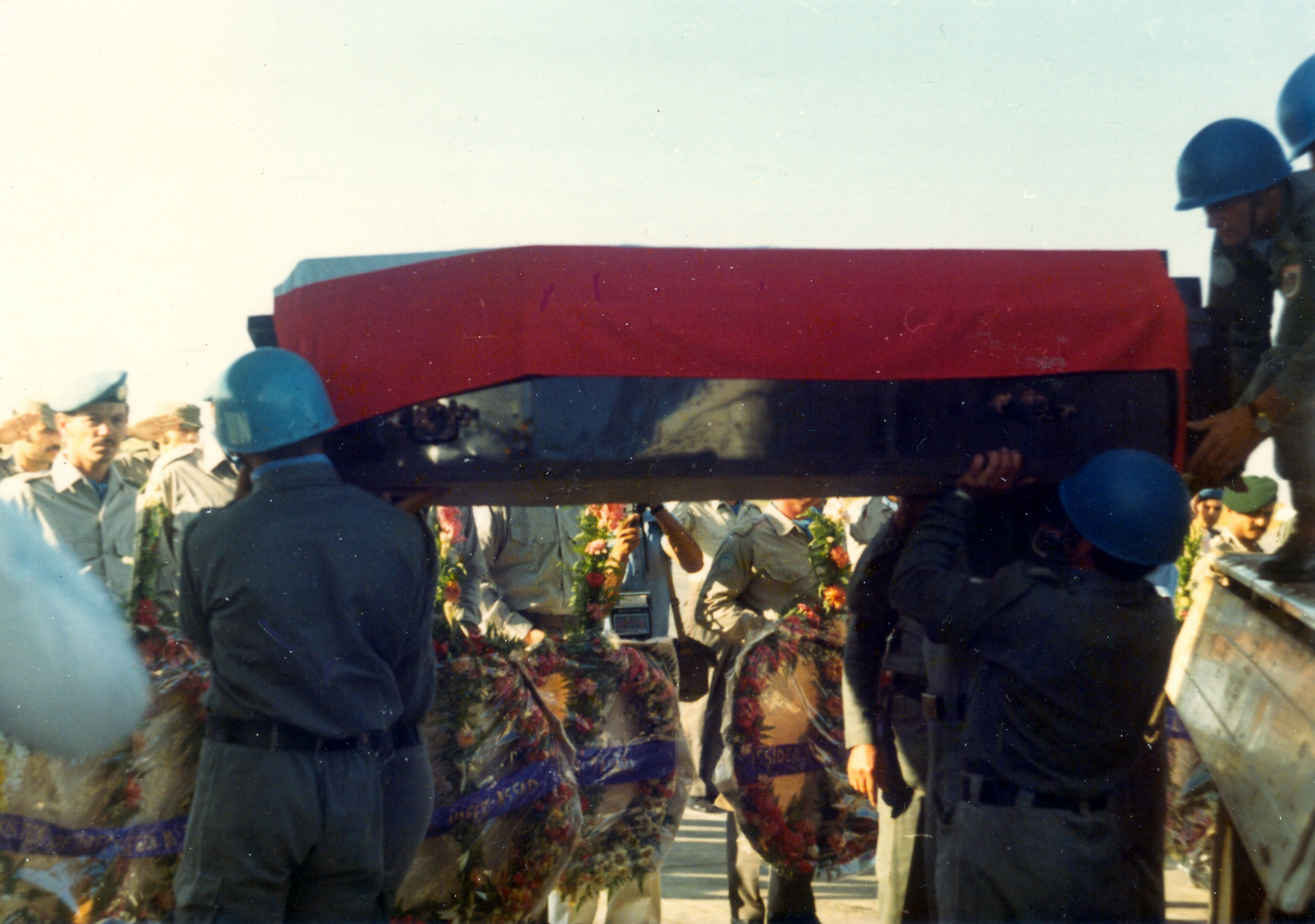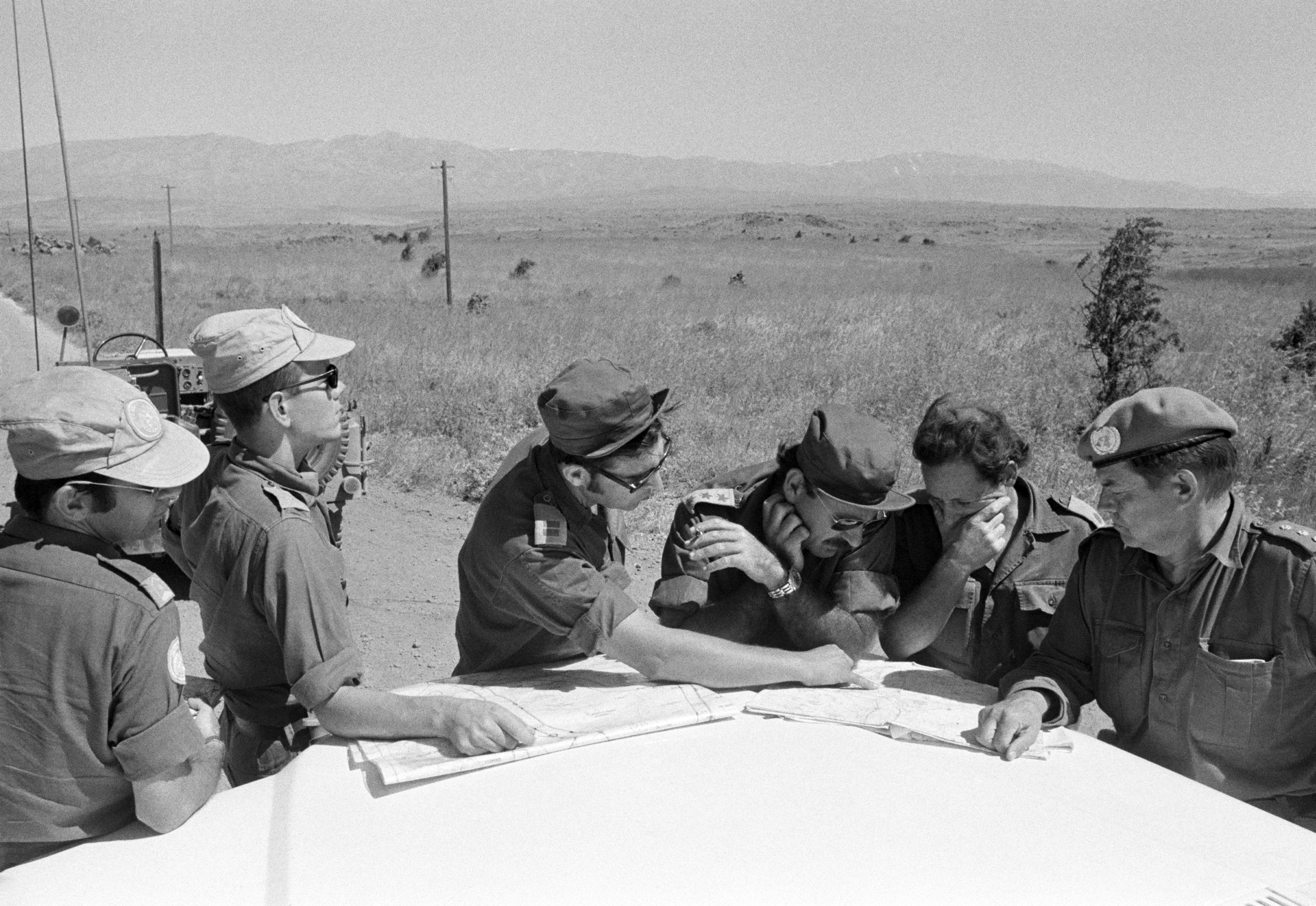 ![]() UN-Photo/Yutaka Nagata | Peer Hjalmar Ensio Siilasvuo, (geb. 1 Jänner 1922, - gest. 10. Jänner 2003.) 1940 Teilnahme am Zweiten Weltkrieg. 1944 zum Hauptmann befördert wurde zweimal verwundet. Nach 1945 in verschiedenen UN-Missions eingesetzt, 1957 Kommandant des finnischen Kontingents UNEF I, dann Bataillonskommandant auf Zypern, 1967 Stabschef im Rahmen UNTSO, zu deren Chef er 1970 ernannt wurde. 1973 Befehlshaber der UNEF II, dann "Chief Koordinator of the United Nations Peacekeeping Missions im Mittleren Osten." Tritt 1980 in den Ruhestand, 1989 zum Dreisterne-General befördert. Als kommandierender Chief of Staff der UNTSO hatte er noch vor dem Inkrafttreten der UN-Resolution 339, Israels Verteidigungsminister Dajan telefonisch informiert, dass er mit deren Wirksamwerden, UN-Beobachter zur Festlegung einer Waffenstillstandslinie an die Front entsenden würde. Sie einigten sich auf eine Feuereinstellung im Sinne der Resolution 339, um 0700 Uhr, dass damit auch entsprechend dem Wortlauts der Resolution jede weitere Truppen-bewegung zu unterlassen sei, hatte Dajan offenbar überhört zurück zum Inhaltsverzeichnis |