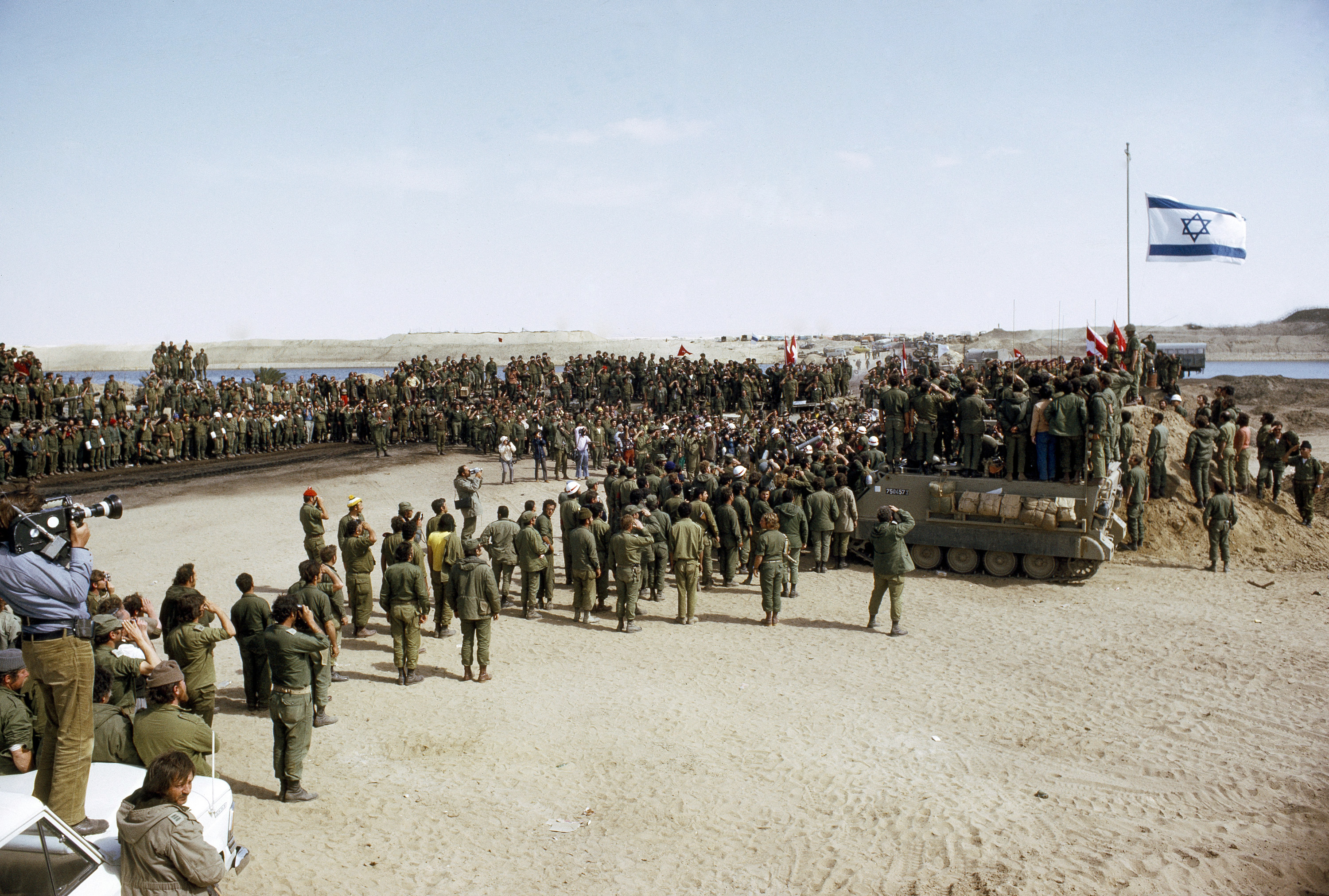 ![]() Tags darauf üm 0600 Uhr früh ist alles wieder nüchtern und steht zur Flaggenparade angetreten, die Schützenpanzer M113 stehen in Reih und Glied, vom gestrigen Sauhaufen ist keine Spur zu sehen. Der Davidstern wird eingeholt und Uri Shahni reicht mir zum Abschied die Hand, dann rollt die Eiheit ab in Richtung Suezkanal. Wie es sich gehört, begleite ich die Kolonne noch einige Kilometer. Shalom chavarim! Shalom Chaverim ist ein beliebtes hebräisches jüdisches Lied. Friede sei mit euch, bis wir uns wieder sehen, möge Friede mit euch sein. (Um das Lied zu hören klicke den Link an) ![]() Das wars dann! |