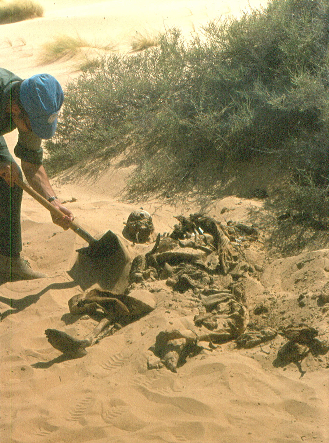 Da die Bergung der Gefallenen einzig und allein den ägyptischen Militärbehörden vorbehalten war, durften auch wir an dieser makabren Stelle keine Veränderungen vornehmen. Ich muss zugeben dass ich mich an diese Anordnung nicht immer gehalten hatte, wie zum Beispiel bei jenem Toten, den ich bei einer Patrouillenfahrt, völlig alleine und von seiner Einheit entfernt, gefunden hatte. Hier war der allgegenwärtige Tod plötzlich zum Einzelschicksal geworden. zurück zum Inhaltsverzeichnis |