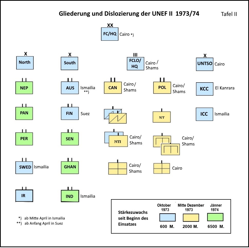 Ein wichtiger Abschnitt unsres Einsatzes ist also beendet. Wir haben manches gelernt und haben Opfer gebracht. Erst jetzt wird bewusst, was hinter unds liegt. Man kann sagen, das ist schon Geschichte und es wird auch klar dass das alles bitterer Ernst und jeder Tag, den man erlebt hat, ein Geschenk war und auch ein Gewinn war. Sicher haben auch unsere laufenden Kontakte und Verhandlungen mit den Kriegsparteien dazu beigetragen, dass man von einer Entwicklung zum Frieden sprechen kann. Die Israelis waren faire Kämpfer und uns gegenüber gastfreundlich und korrekt. Mag sein, dass ad auch Berechnung dabei war Die Ägypter uns mit offenen Armen empfangen und uns als Vertreter des modernen Europas gesehen. Als Soldaten haben sie uns mehr als nur respektiert; sie haben in uns Freunde gesehen. Ich hoffe, den einen oder anderen wieder zu sehen. Inhaltsverzeichnis |