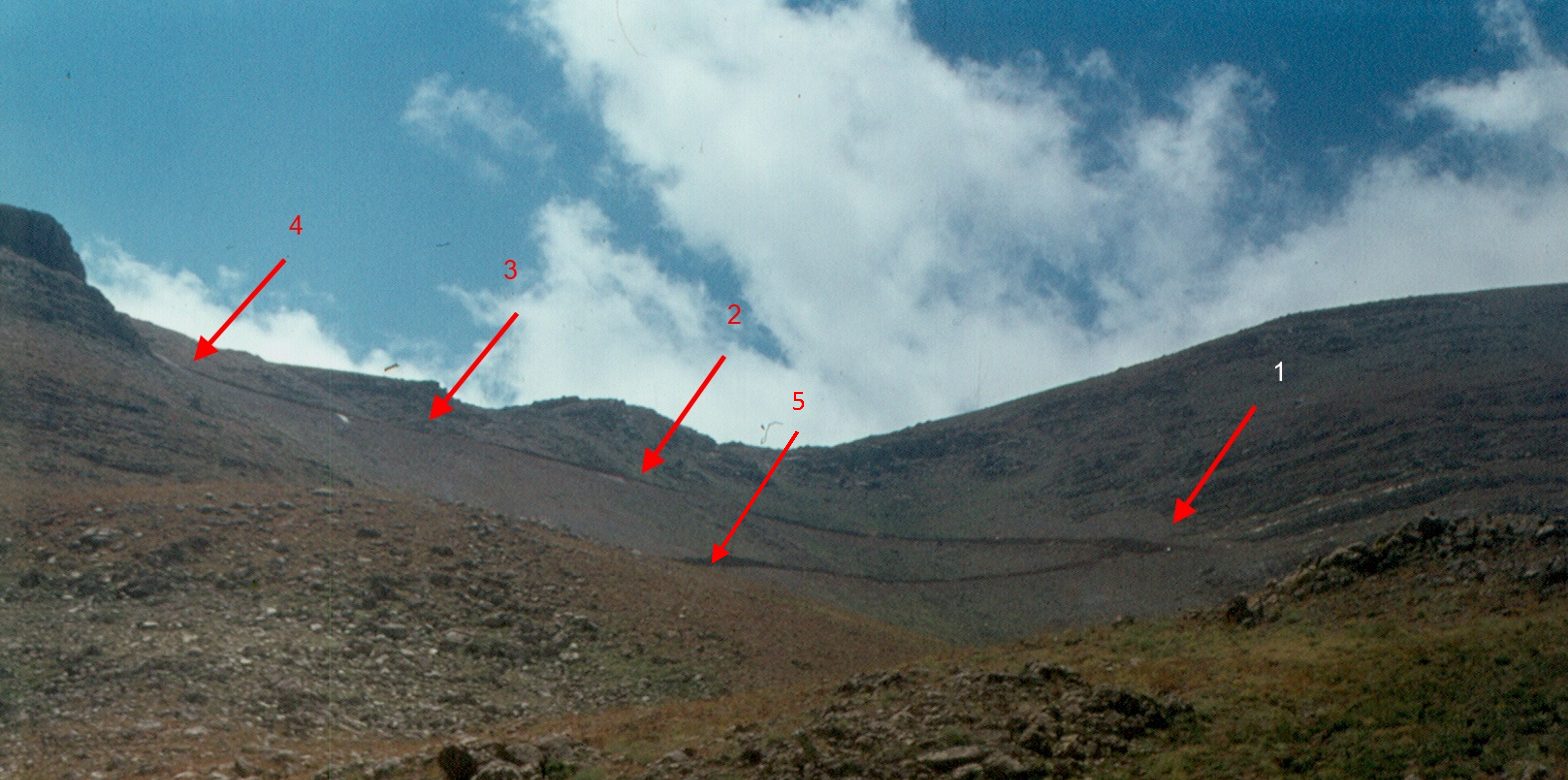 Wenige hundert Meter unterhalb des Gipfels liegt der "Garten des Propheten Elias", eine grüne Oase inmitten der Steinwüste, dominiert von einer tausendjährigen Zypresse und ein Brunnen. Die Stelle wird auch nach dem Mönch, der diese Himmelsleiter der 3600 Stufen geschaffen und hier gehaust haben soll, "Kartause des Stephanos" genannt. Hier soll er den Pilgern die Beichte abgenommen, die auferlegte Busse dürfte sich von selbst ergeben haben. |