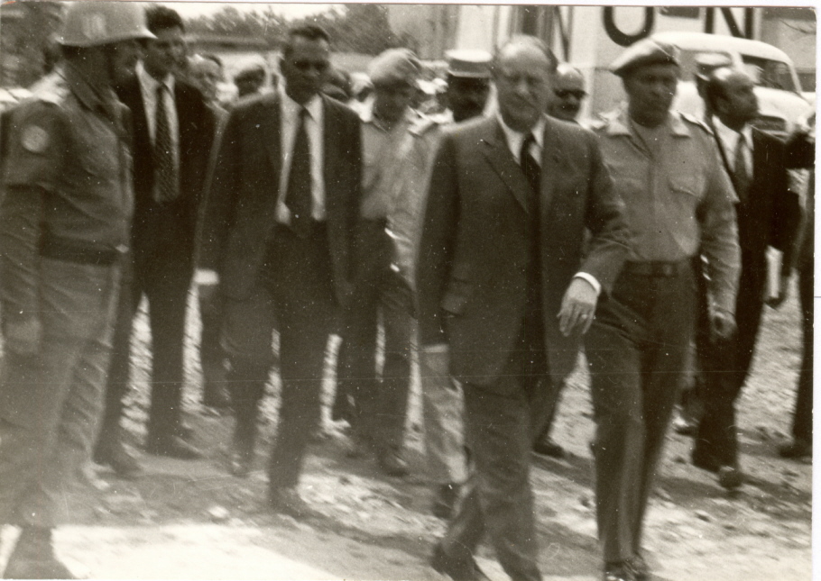 Am 4. Juni besucht Generalsekretär Dr. Kurt Waldheim im Anschluss seines Empfangs im UNDOF HQ Damaskusdas, das bereits am Vortag in Syrien eingetroffene Erkundungskommando - Recceparty - in Camp Quanaquer.![]() Meldung der Truppe durch OpsInfo ![]() Gruppenfoto der Recceparty mit dem Generalsekretär (zum Wiedererkennen aus die Bilder klicken) Beide Fotos UN-Photo/Nagata |