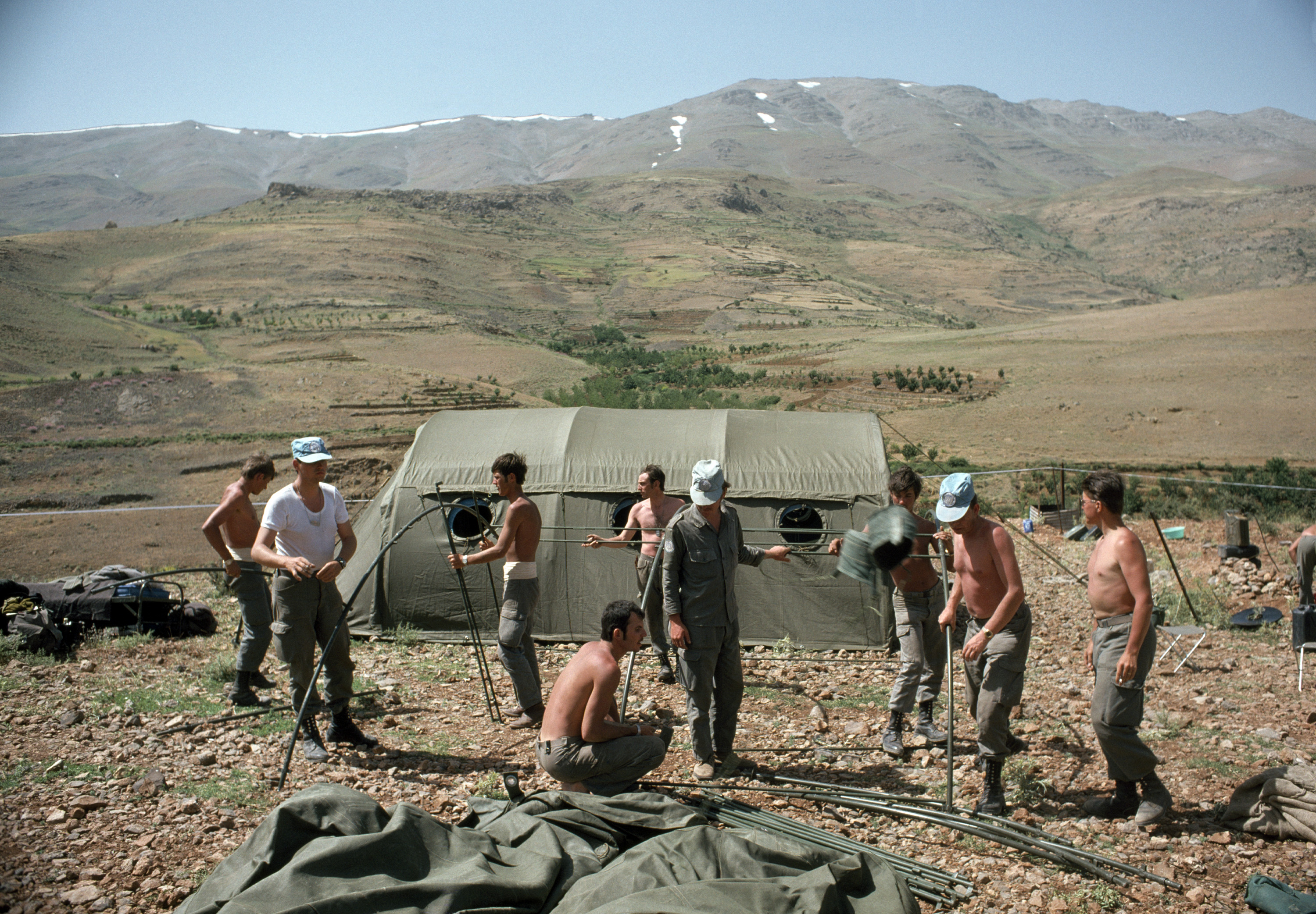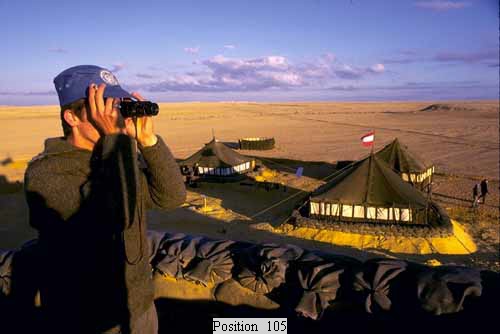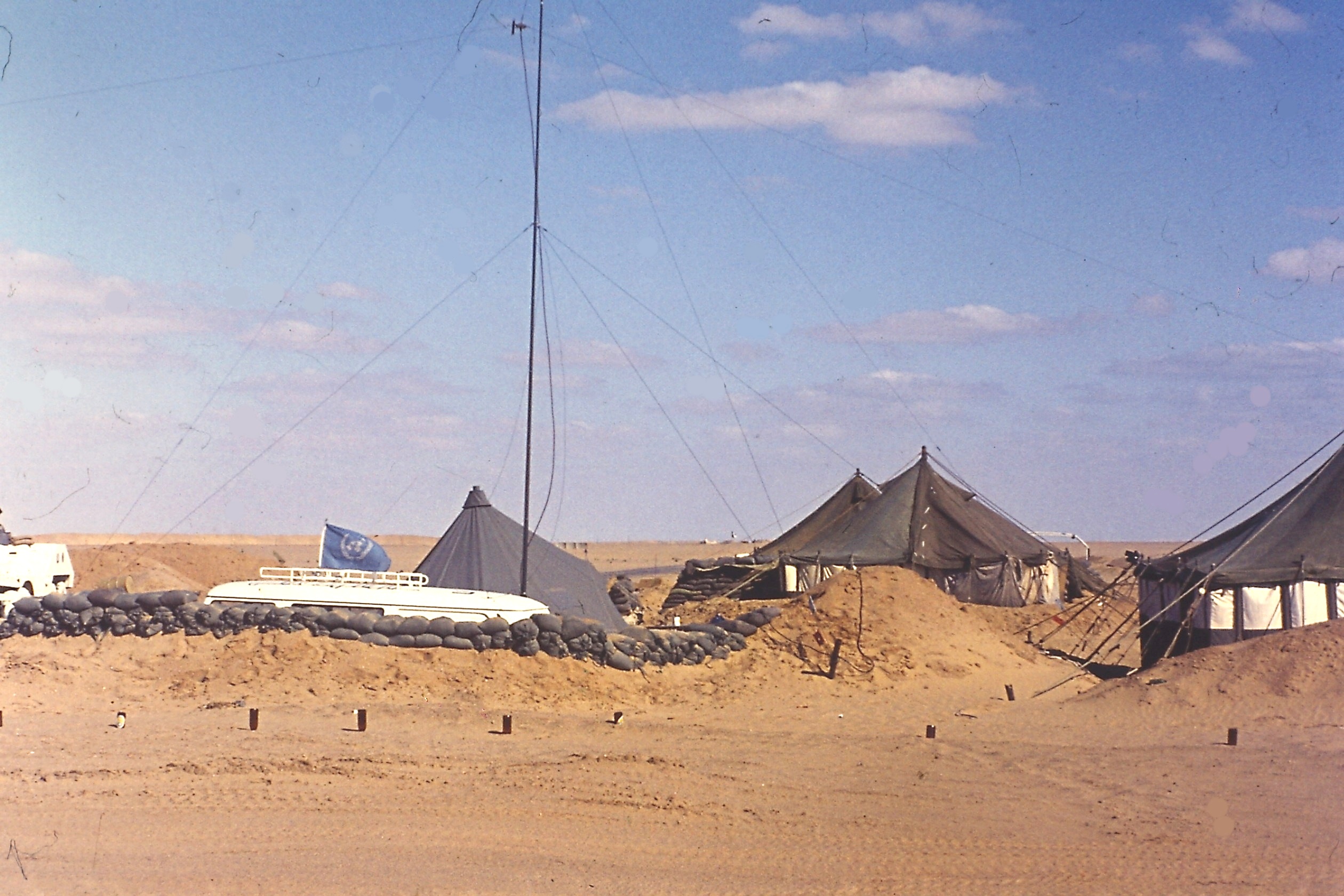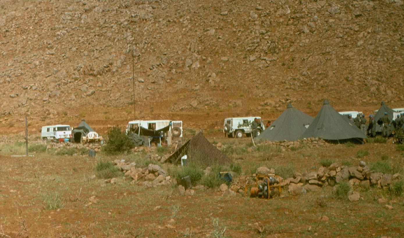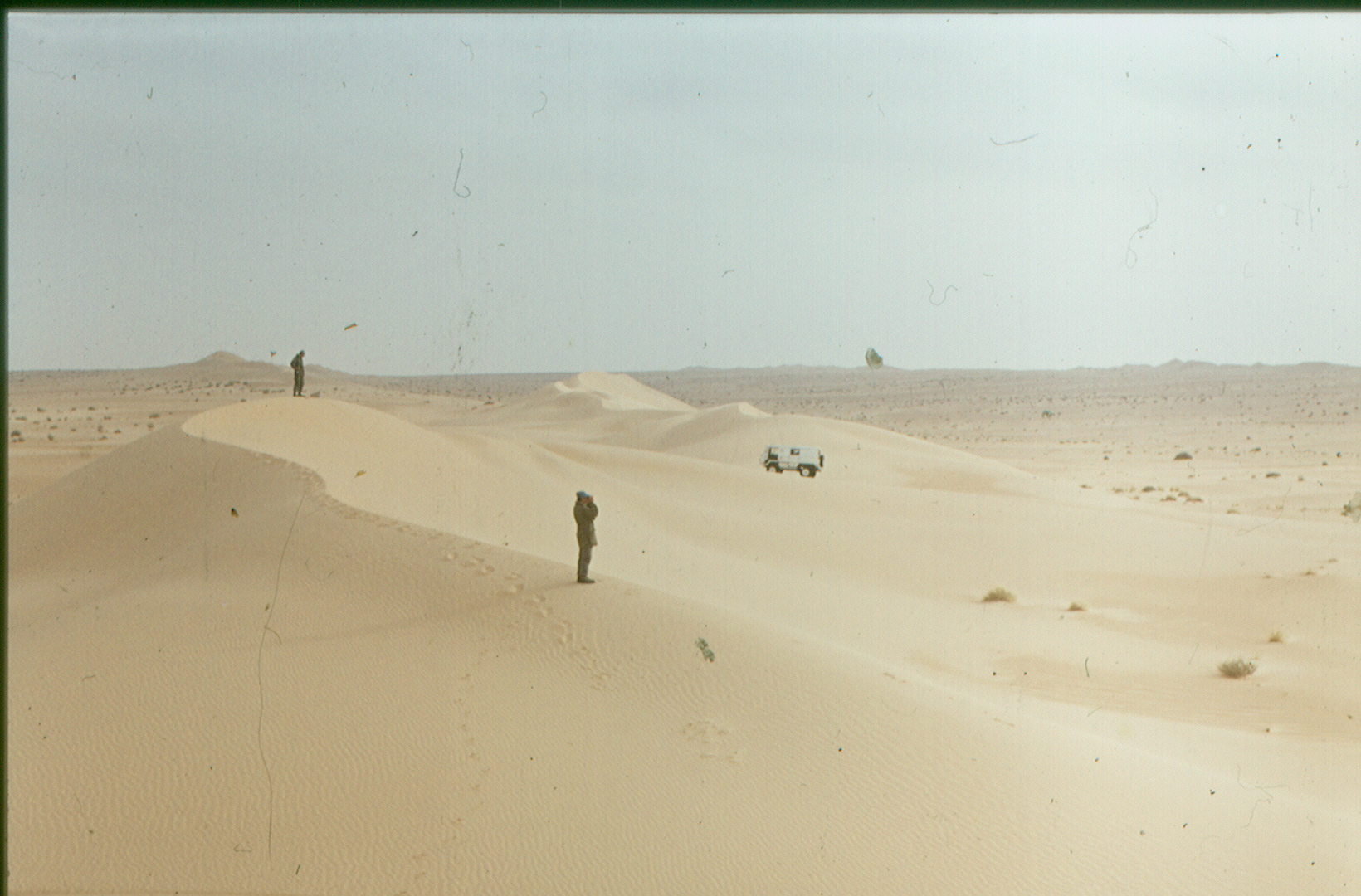 Samstag 23. 3. 1974 Um 0700 Uhr soll die Übergabe stattfinden. Kommandiert wird französisch und deutsch. Dann zieher die Afrikaner ab und ich bin Herr über 100 Quadratkilometer Wüste. Die Positions müssen komlett umgebaut werden, da die Senegalesen die Zelte in Mulden gebaut hatten, die kein Bisschen Wind den Weg fand. Außerdem hatten sich dichte Fliegenschwärme niedergelassen. Die Position 118 wird fast zur Gänze neu errichtet |