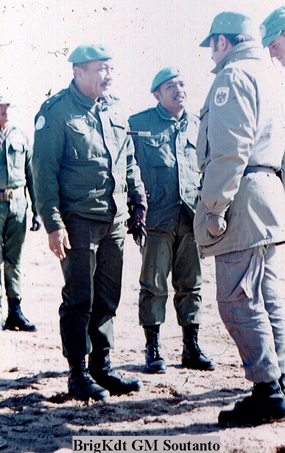 Nachts wird fast ununterbrochen geschossen. Der ägyptische "Volkssturm", offenbar als Wachen und Sicherungsposten eingesetzt, feuert auf alles, was sich bewegt und wenn sich nichts bewegt, wird einfach in die Luft geballert. Ab Einbruch der Dunkelheit herrscht daher striktes Ausgangsverbot für das gesamte UN-Personal. Samstag 19.12.1973 Da sich der 1.Zug der Kp auf Recreation in Kairo befindet, fahre ich heute zur Dienstaufsicht dorthin. Die Leute sind im bereits erwähnten "Shams Camp", das als Basislager der UNEF dient, untergebracht. Natürlich nütze ich auch die Gelegenheit, um mir ein erstes Bild von Kairo zu machen. Im Basar mache ich einige Weihnachtseinkäufe. Das Angebot an Wahren reicht vom Ramsch bis zu echten, wertvollen Stücken des orientalischen Kunsthandwerks. Am Abend erhalte ich endlich den Fotoapparat, den mir ein Jahrgangskamerad, der sich als Beobachter bei UNTSO, ICC4 befindet. Aufgabe der UNTSO ist vorwiegen die bewegliche Überwachung des Frontgebietes, während die Bataillone der Force diese Tätigkeit aus den Positions wahrnehmen. Im Gegensatz zur Force sind die Beobachter, oder kurz UNMO 5 genannt, unbewaffnet. 20. - 22.12.1973 Ich lasse den Unterkunftsblock, ein dreistöckiges Gebaude, das die vergangenen Kämpfe relativ wenig beschädigt überstanden hatte, gründlich reinigen und die WC und Waschräume reparieren. - Langsam gewöhnt man sich ein. Außer neuen Bekanntschaften im ICC, einem russischen UNMO und dem Chef des ICC, ein UNMO aus Frankreich, ist meine Premiere als Duty-Officer eine Erfahrungen der besonderen Art: Ein Reporterteam der Bunten Illustrierten begehrt forsch um ein Photoshooting, ist aber weder angemeldet noch kann der Wortführer eine schriftliche Genehmigung vorweisen. Um sicher zu gehen, wage ich es, trotz besseren Wissens Weingerl aus seinem Schlaf zu stören. Der schmeißt dann das ganze Team persönlich raus, nicht ohne mir vorher sein Missfallen über die Ruhestörung zu bekunden. Immerhin schien die Sache so wichtig, als der Vorfall auch im Monatsbericht nach Wien gemeldet wurde. Erstmaliges Auftreten des Kommandanten der Nord- Brigade, General Soutanto aus Indonesien und Bekanntschaft mit dem CO von ICC, einem französischen Major. Die häufigen Besuche im ICC gelten vorwiegend meinem Jahrgangskameraden von der MilAk, Hptm Buzek, der mir bei der Eingewöhnung in die Sitten und Gebräuche der neuen Umgebung behilflich ist. Hier herrscht vorrangig das Motte den Newcomer "blöd sterben lassen". Sonntag 23. 12. 73