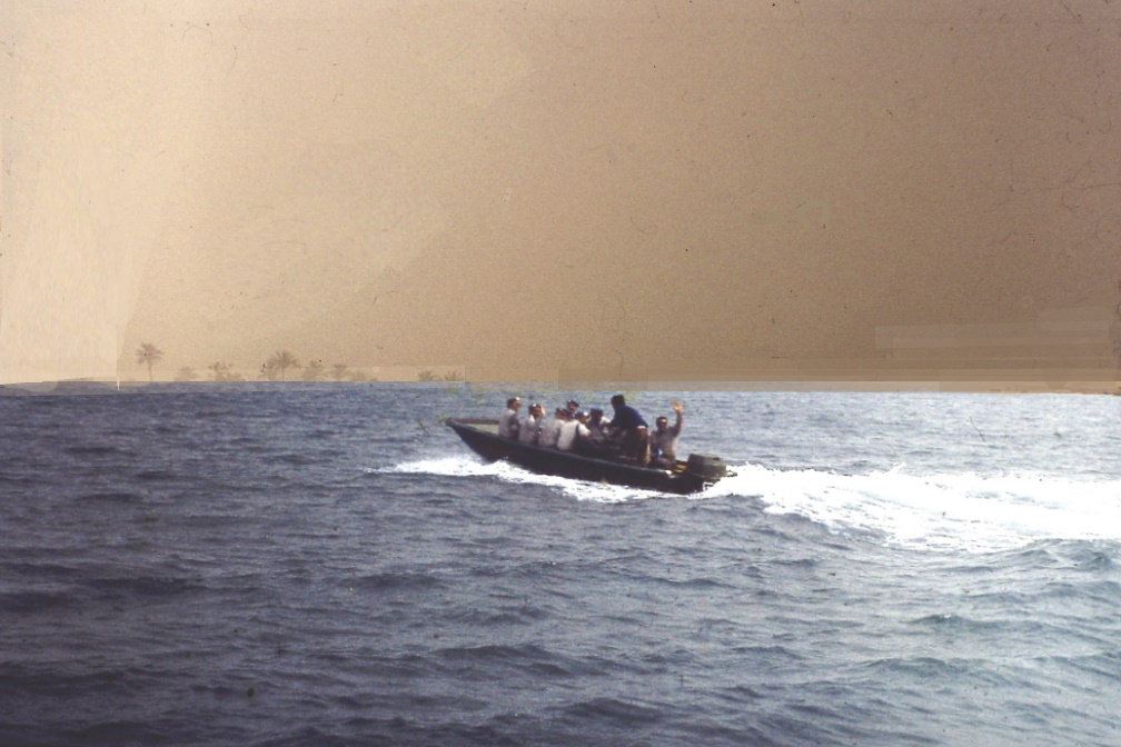Freitag 22. 2. 1974 Der Tag an dem unsere Aufgabe im Wadi Ashara zu Endegeht, ist angebrochen - mit Wehmut sehe ich dem Abbau der Positions zu. Um 0700 Uhr sind wir alle, Offiziere und Unteroffiziere, von den Ägyptern zum Frühstück geladen. Wieder haben sie alles gegeben um eine üppige Tafel herzurichten. Den Abschied wollen sie so lang wie möglich hinauszögern und man sieht ihnen die Freude an, wieder Herr im eigenen Land zu sein. Die Offiziere bekommen jeder ein Kompanieabzeichen überreicht, als Gegengeschenk überhäuft man uns mit Konserven aller Art. |