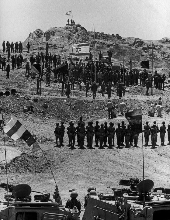 Abends gibt es Abschiedsparties auf allen israelischen Stützpunkten. Schon Tage zuvor wurde vereinbart, dass wir Österreicher die Getränke besorgen und die Isis für das Essen zuständig sind. Aus begreiflichen Gründen konnten an den Parties konnten natürlich nur wenige der Österreicher teilnehmen. Im Kompaniegefechtsstand von Uri Shani geht es hoch her. Uri Shani teilt mir mit, dass seine Kompanie als Nachhut nun unter dem Schutz der Östrerreicher stünde. Das entsprach auch den Tatsachen, denn in kurzer Zeit hätte man die des Alkohols ungewohnten Krieger Israels nur noch einsammeln brauchen. Als gleichrangige Häuptlinge tauschten wir auch unsere Dienstgradabzeichen. Das Ende der Feier ergab sich von selbst: Uri, der unverändert nüchtern blieb, riet mir den Hinterausgang des Raketenbunkers zu nehmen, denn den Vorderausgang blockieren einige Leichen der unbesiegbaren Israelischen Armee. |